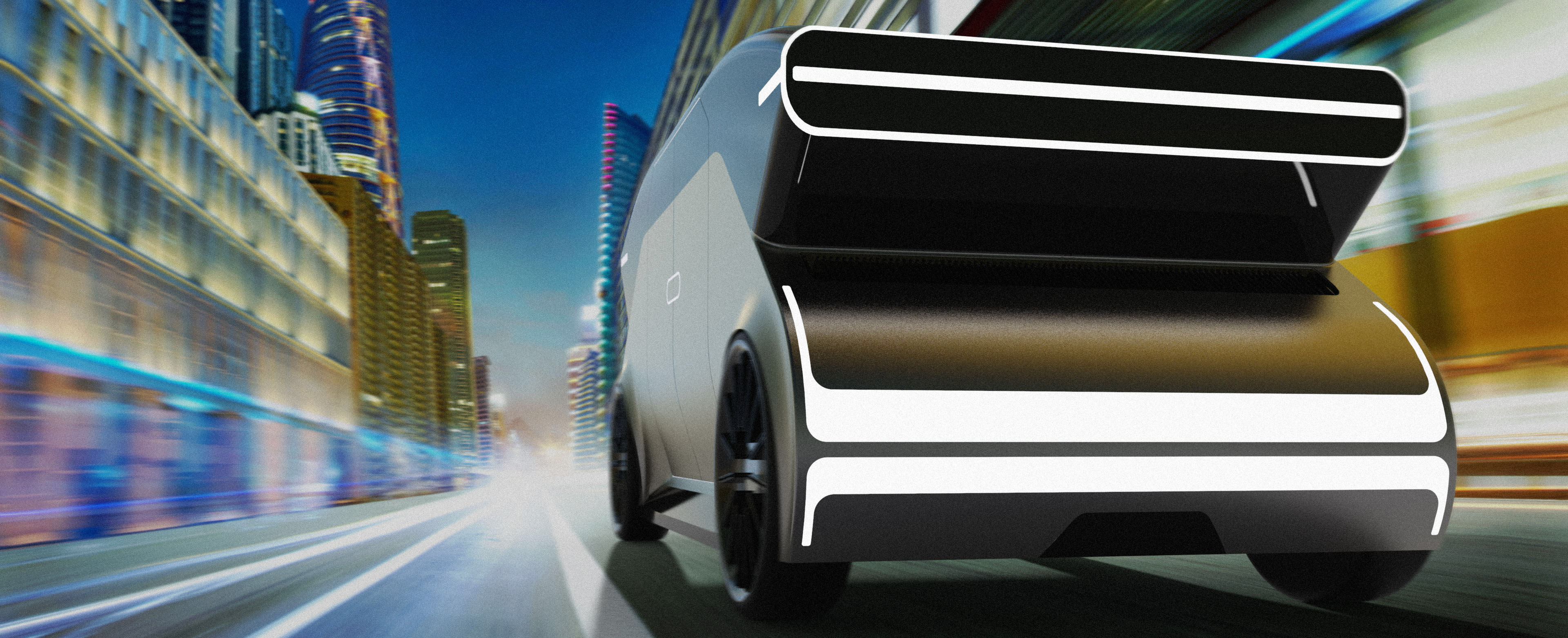 To combine both worlds of private and public transportation, certain parameters have to be set. Keep the flexibility of a car but make it usable as public transport. The size of the vehicle is made to make space for up to four people. This ensures space to work while keeping the outside as small as possible.